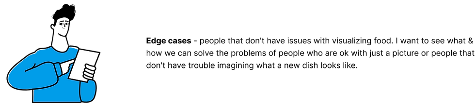 This project has ignited my passion for the restaurant/food/service industry. I've been obsessed with shows like Kitchen Nightmares, Chopped, Parts Unknown, and YouTubers such as Binging With Babbish, the Bon Apetit team, First We Feast, Panlasang Pinoy, and Joshua Weissman. I'd like to contribute my design skills to help this industry and be surrounded by my one true love: FOOD!